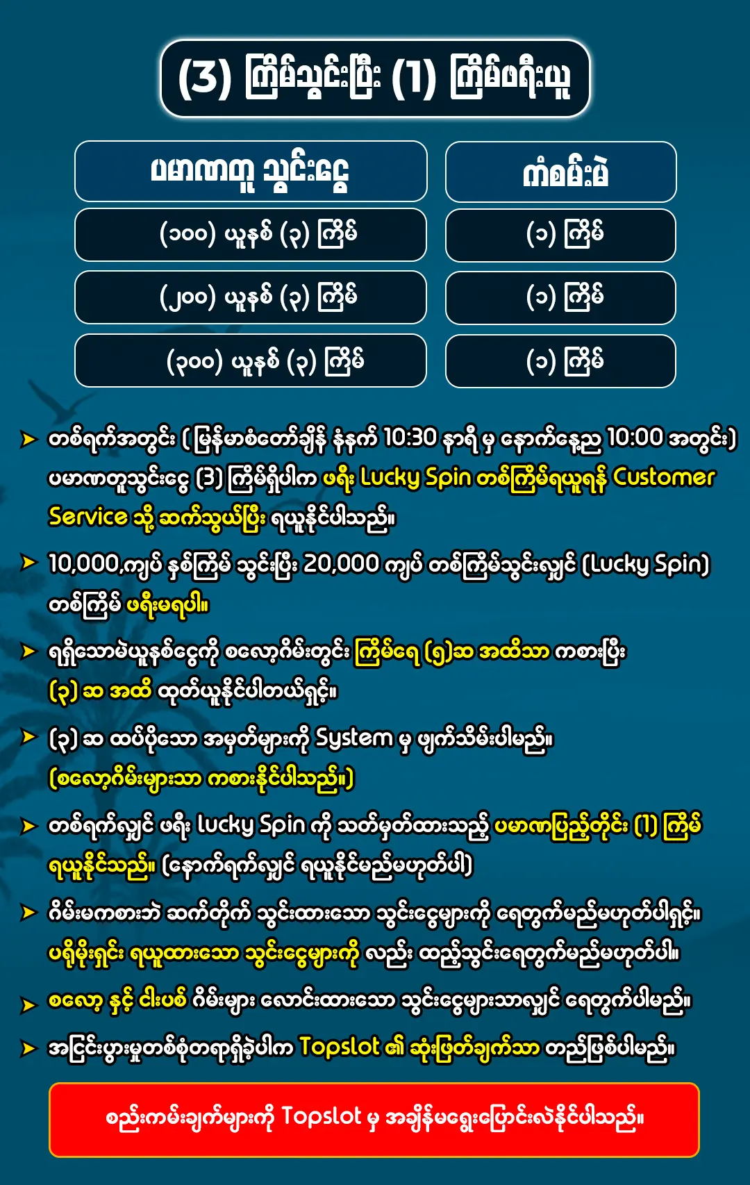 Daily Rewards : Members who play the highest turnover of the day. will be the winner daily champion.