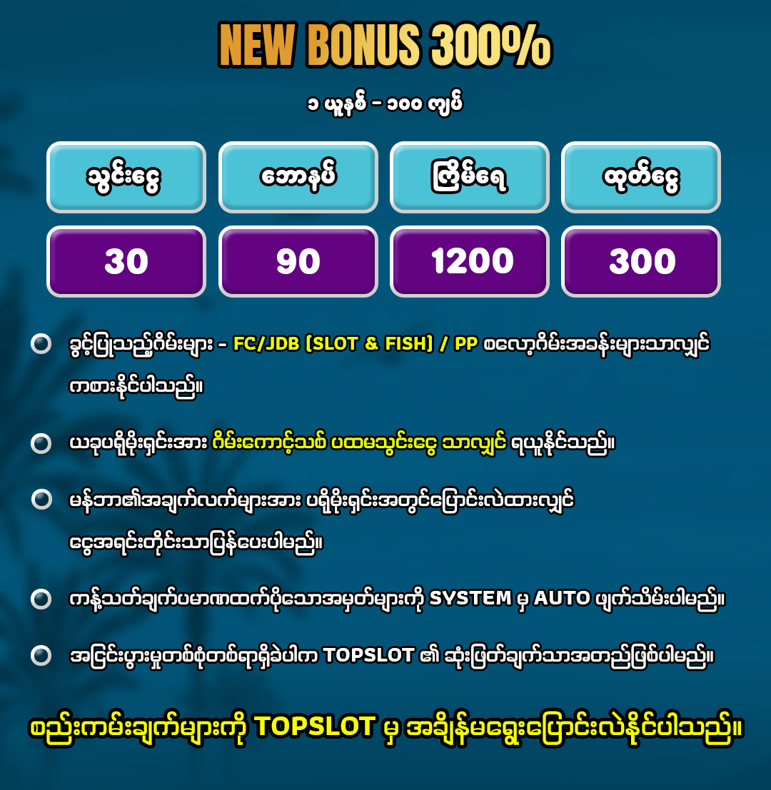 6. TOPSLOT.com has the right to amend, change and stop the promotion at any time without prior notice.